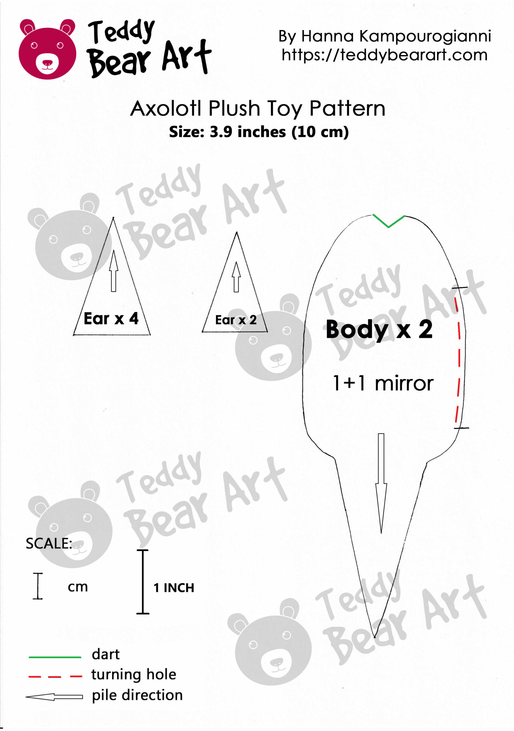 Let’s bring our axolotl plush to life step by step using the sewing pattern. Please note that the seam allowance is approximately 1 cm.