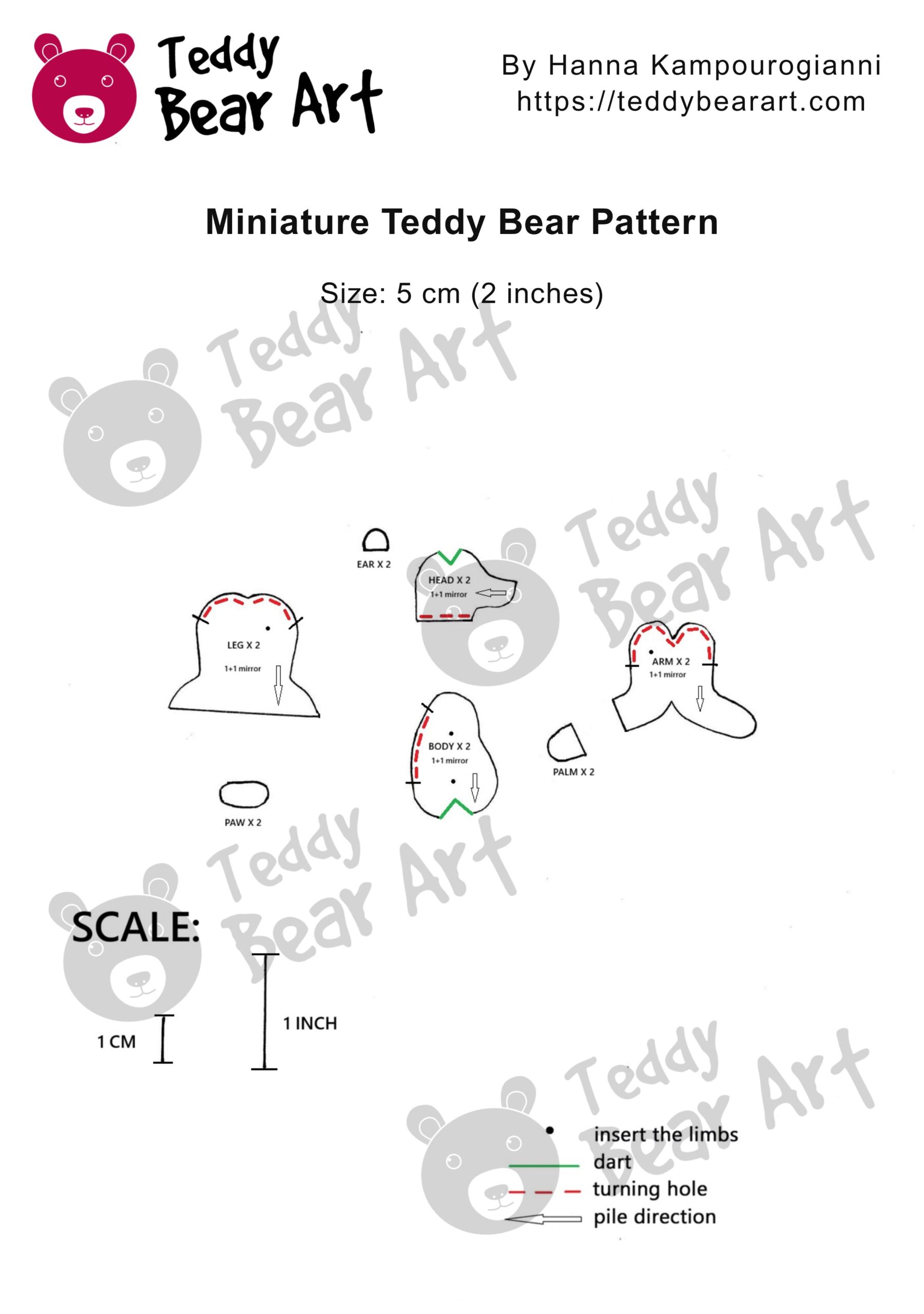 The finished bear measures 2 inches, approximately 5 cm. Despite the size, the design includes: