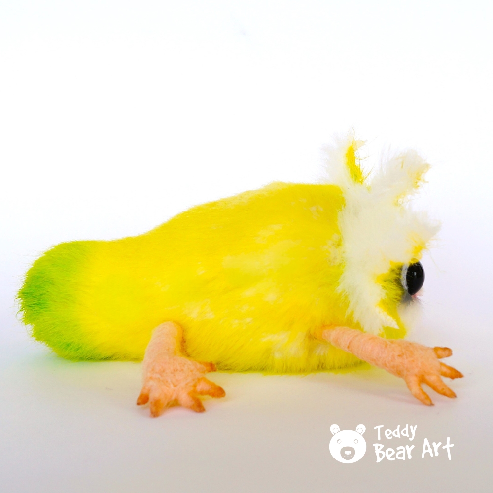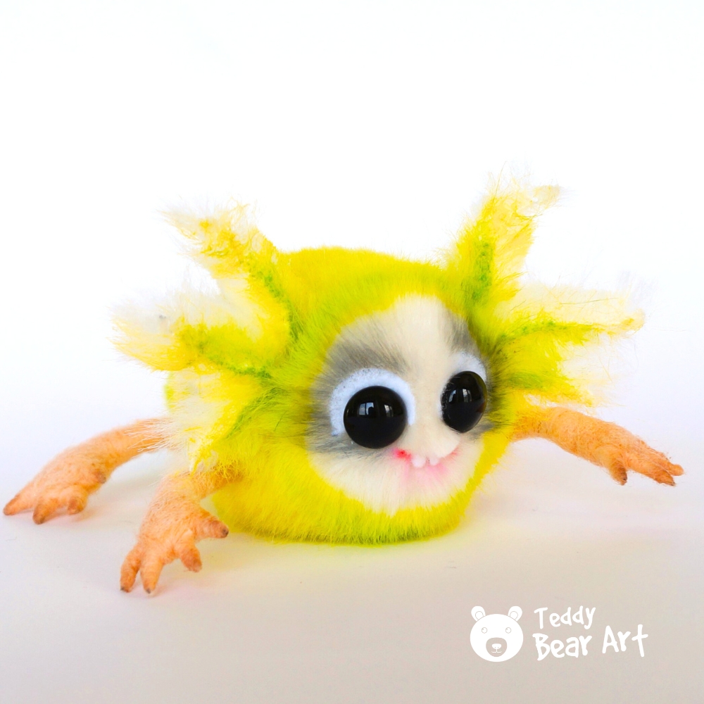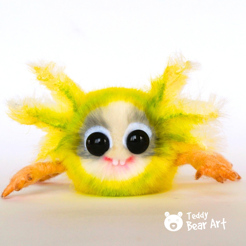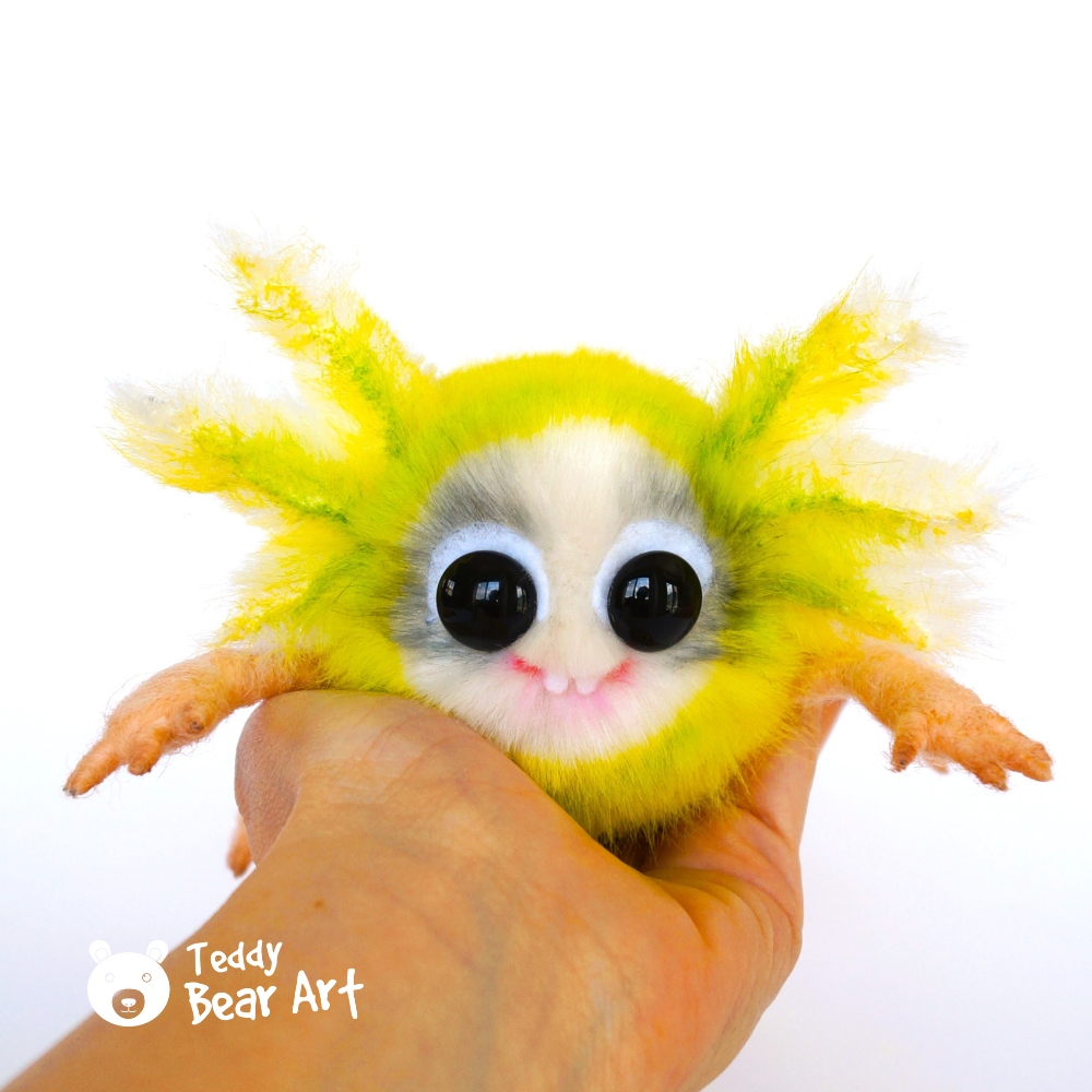 Materials: faux fur, glass eyes, synthetic filler, and metal weight. There are no joints.