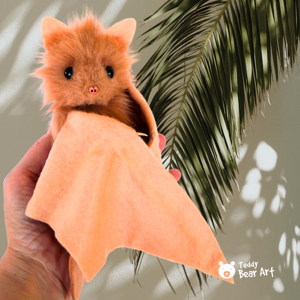 Materials: Faux fur, felt fabric, glass eyes. Filled with synthetic filler. She’s soft, fluffy, and glowing with warm amber tones that make her look like a tiny sunset in flight. Standing 15 cm tall (about 5.9 inches) with an impressive 30 cm wingspan (about 11.8 inches), she has gently folding wings and a sweet, turning head.