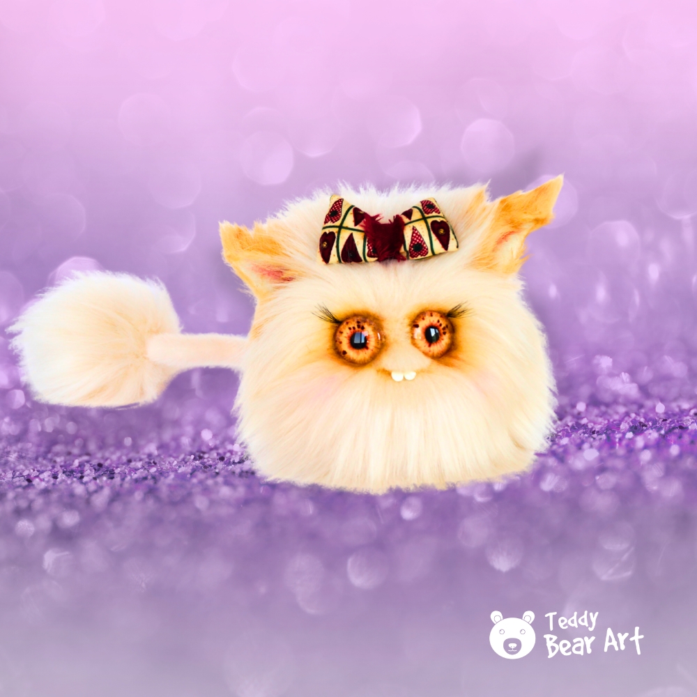She’s a fluffy white mischief-maker with a tail — playful, cheeky, and full of fun, yet always kind and sweet.