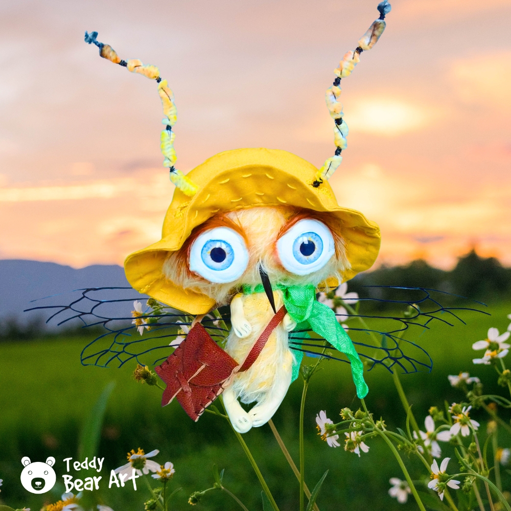 Meet Flinn the Curious Mosquito! With his big bright eyes, sunny hat, and tiny bag, he’s not here to bite — he’s here to explore! Flinn loves buzzing from flower to flower, collecting funny stories, and sharing them with anyone who will listen. His green scarf flutters in the wind as he sets off on another little adventure.