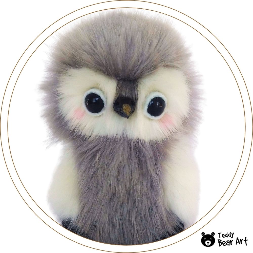 Materials: Faux fur, glass eyes. Filled with synthetic filler and weighed with metal granules. The head and the wings are jointed.