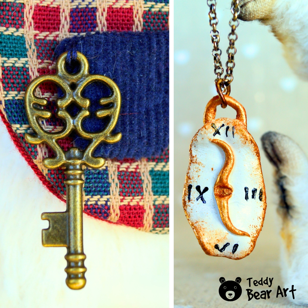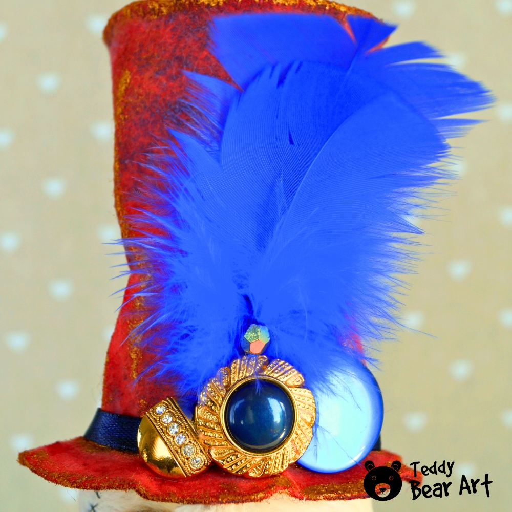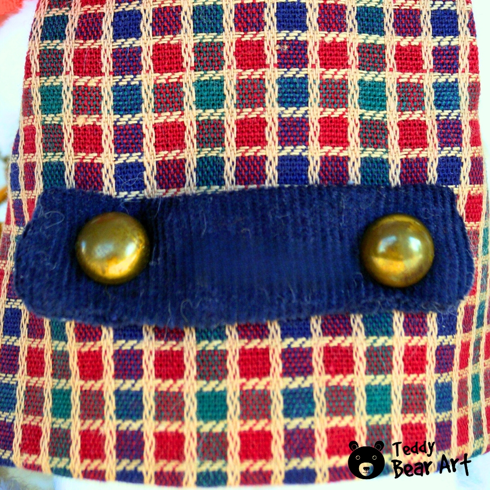 Materials: Viscose (Germany), glass eyes, wired ears, fiberfill, metal granules, cotton, and felt. 5 joints. Clothing and accessories can be removed.
