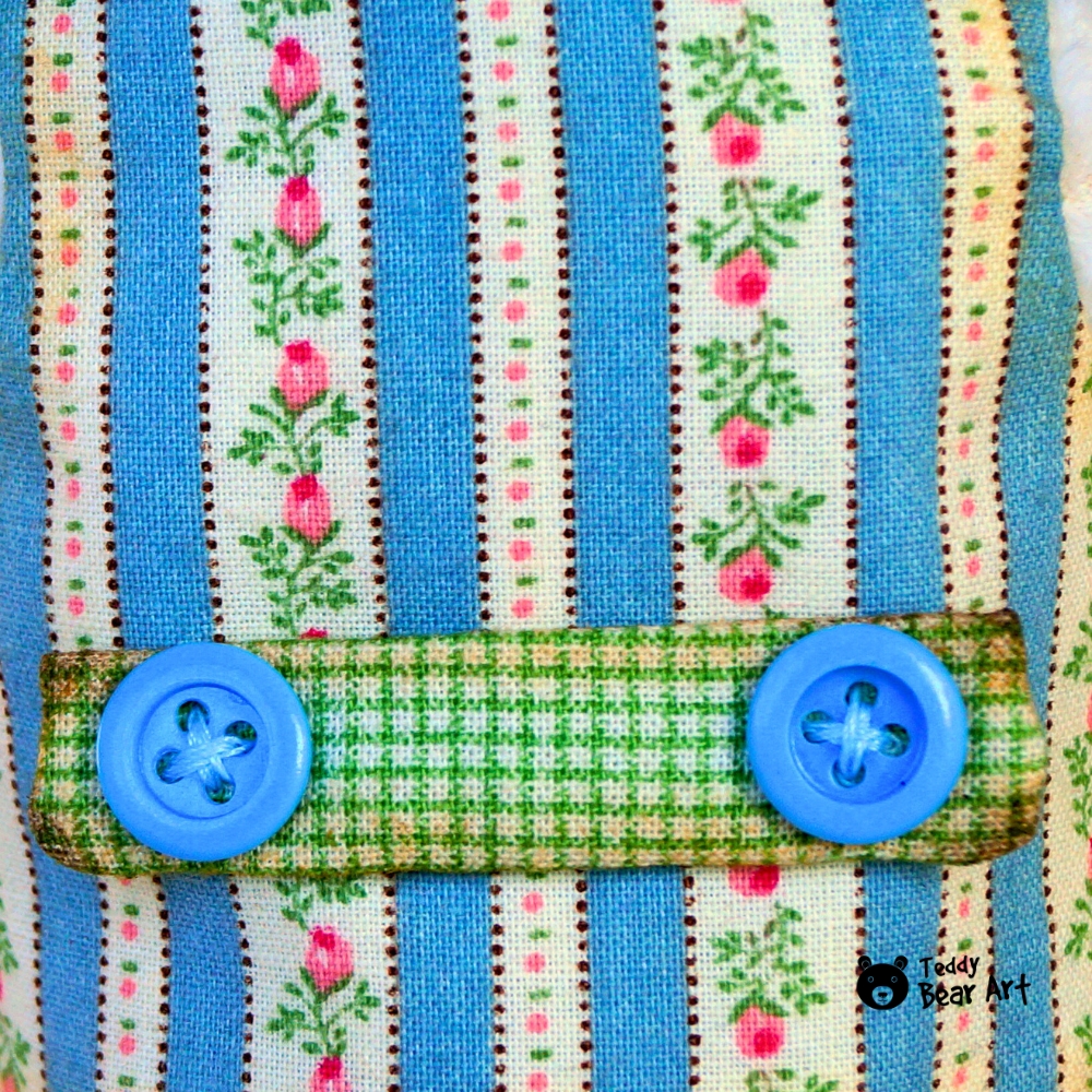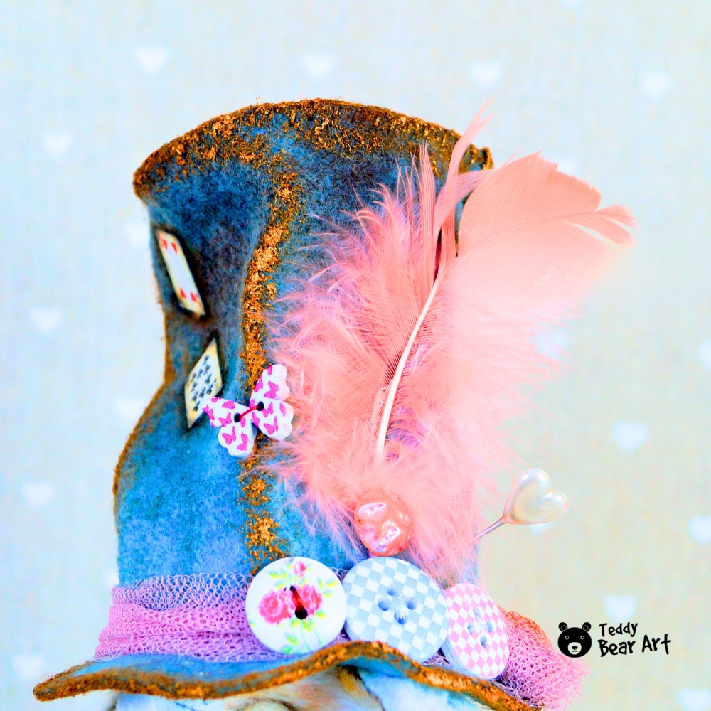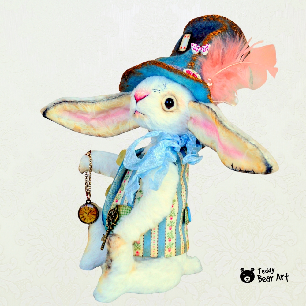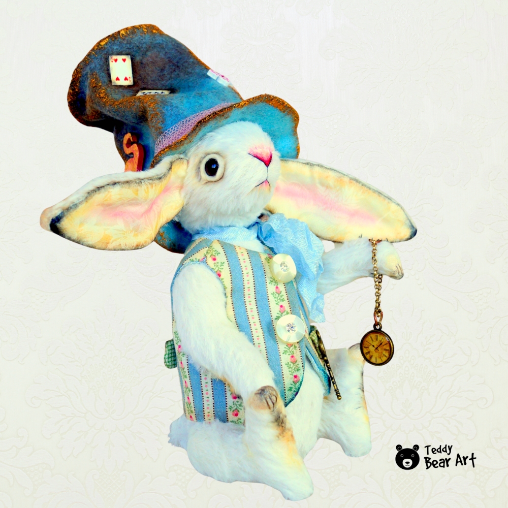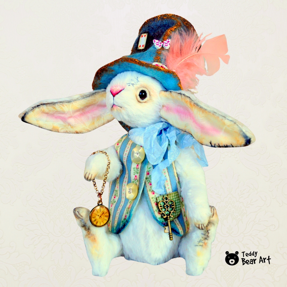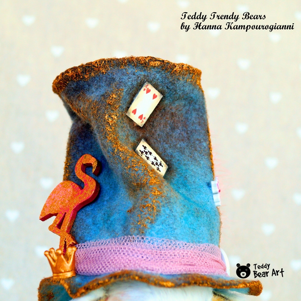 Materials: Viscose (Germany), glass eyes, wired ears, fiberfill, metal granules, cotton, and felt. 5 joints. Clothing and accessories can be removed.