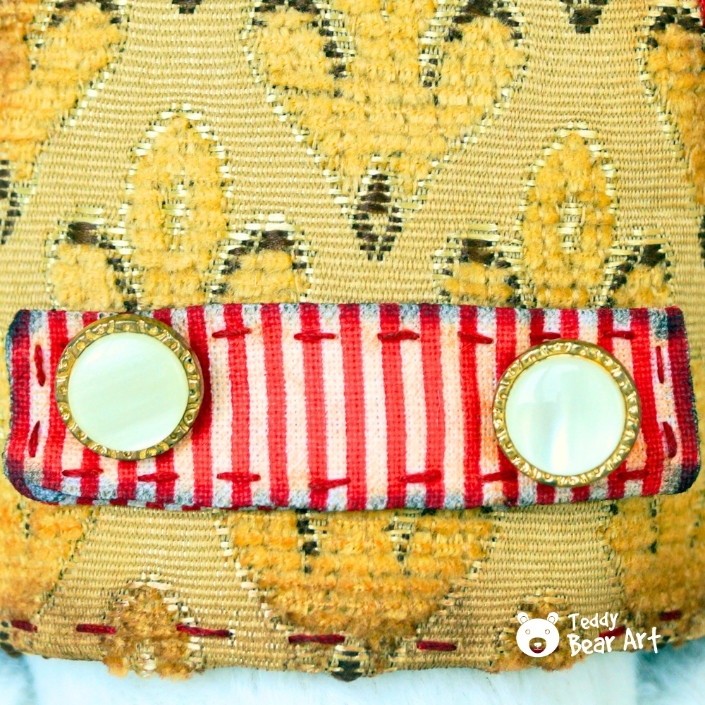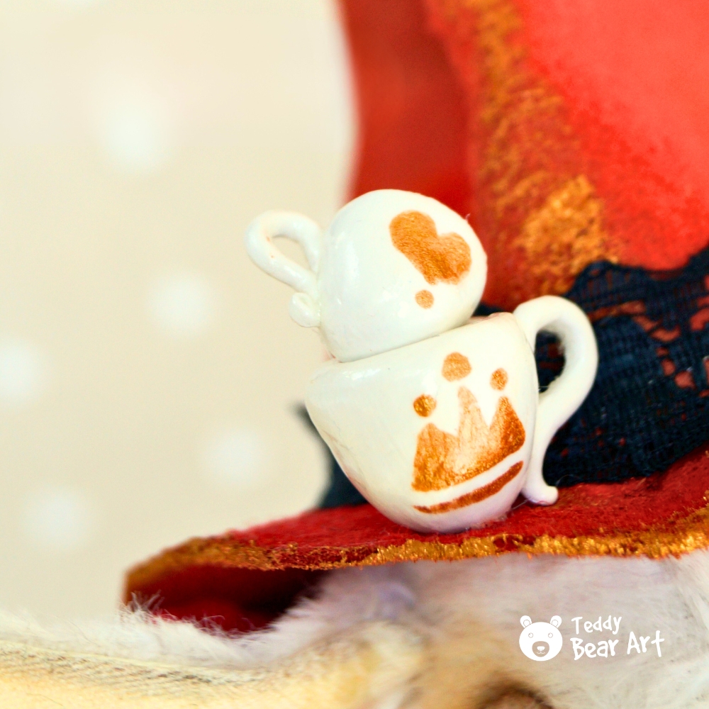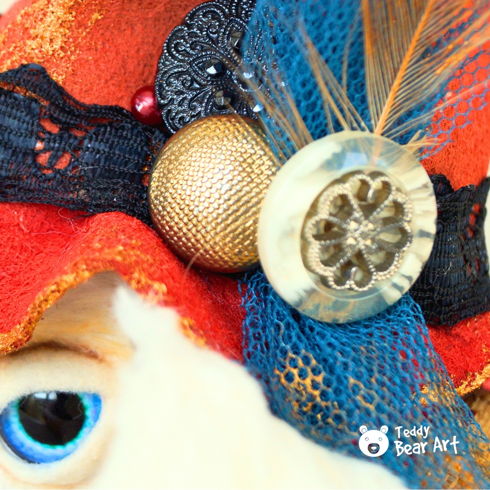 Materials: Viscose (Germany), glass eyes, wired ears, fiberfill, metal granules, cotton, and felt. 5 joints. Clothing and accessories can be removed.