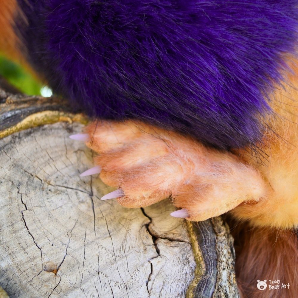 The claws are made of polymer clay for a realistic look, and the whiskers are real horsehair.