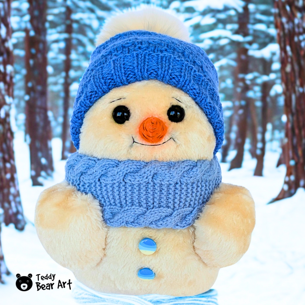 Ollie was not shaped from snow but stitched with care. His hand-knitted hat and scarf carry the spirit of winter evenings, when the world is quiet and still. He never melts, but keeps a piece of winter’s magic, reminding us that even the coldest season can feel cozy when you hold him close.
