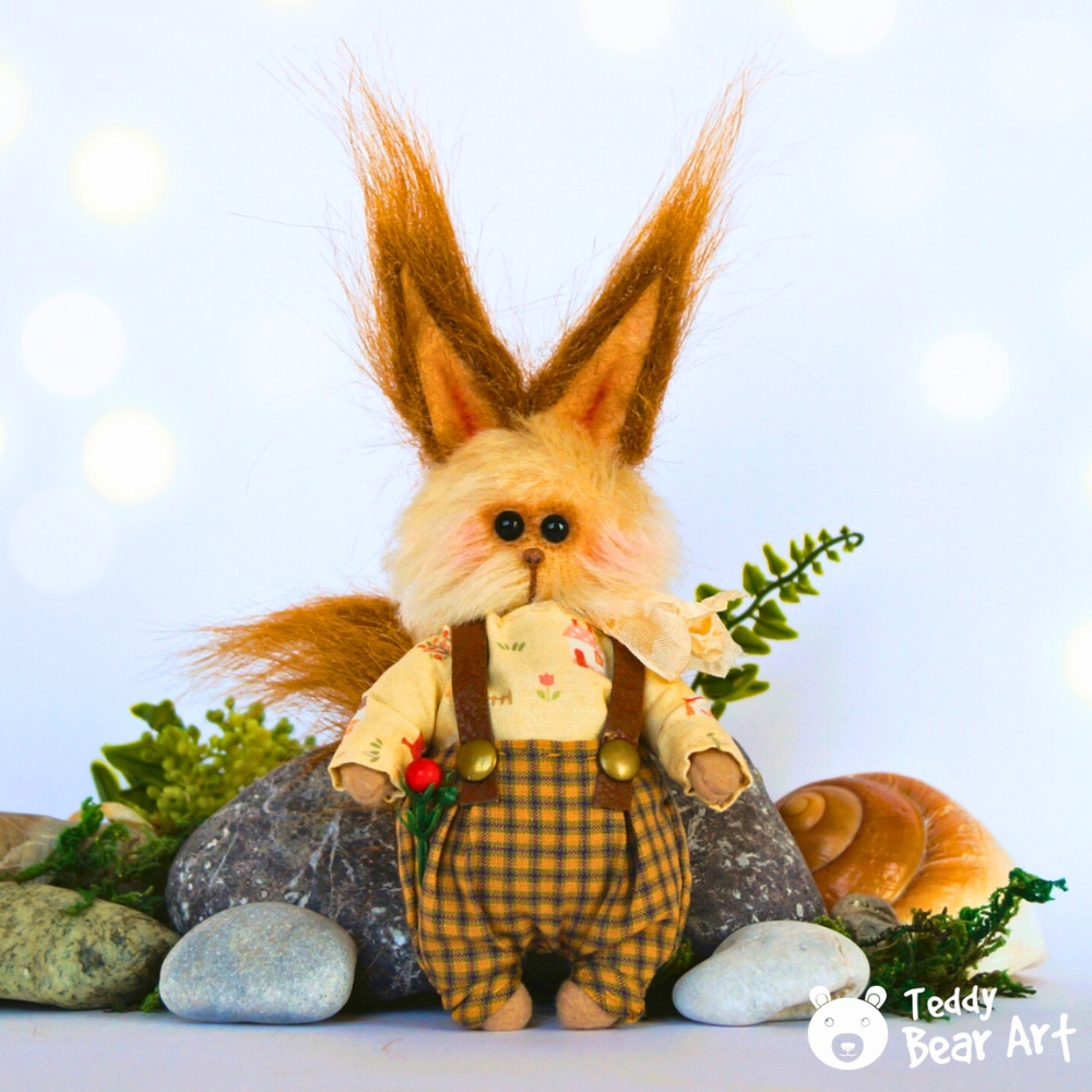 Materials: Mohair, faux fur, fleece, and cotton. Filled with synthetic filler and metal granules for weight.